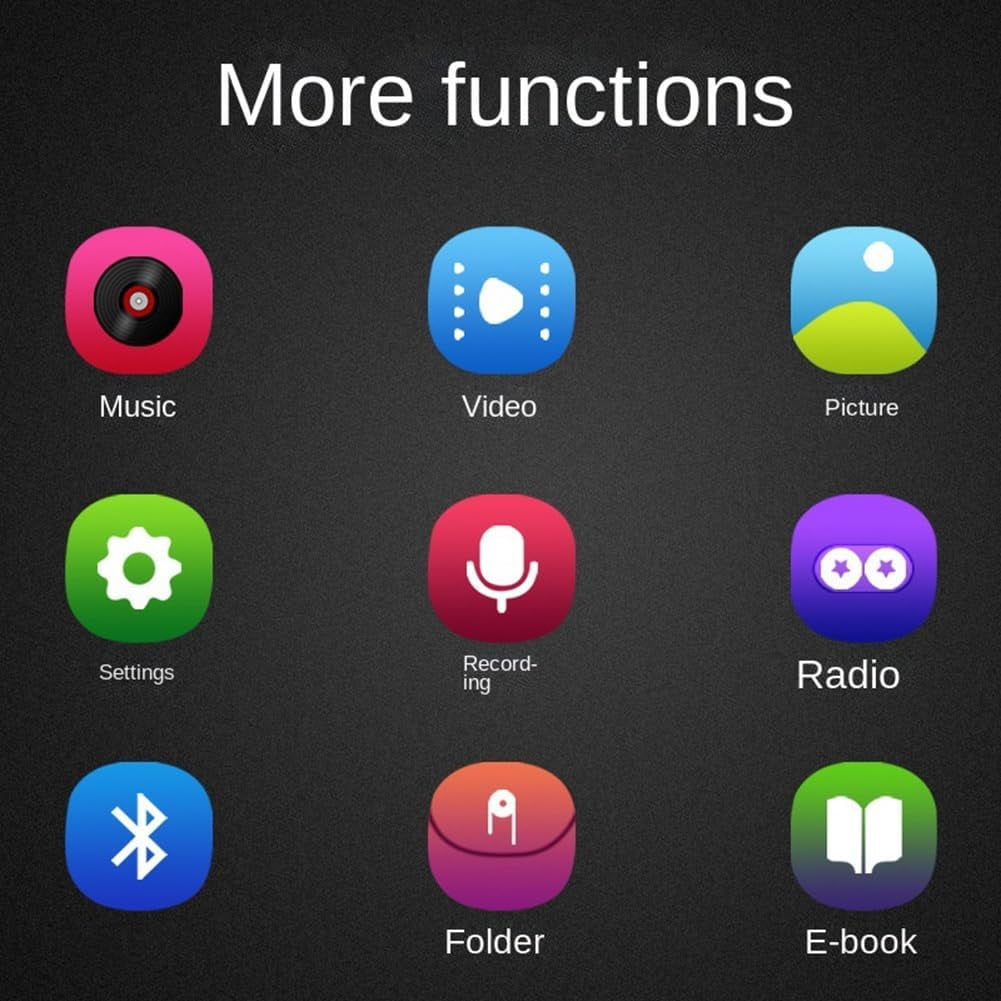 🎧Multi-functional and practical. This MP3 player not only supports Bluetooth connection FM radio recording alarm clock video playback electronic photo album time display calendar function.