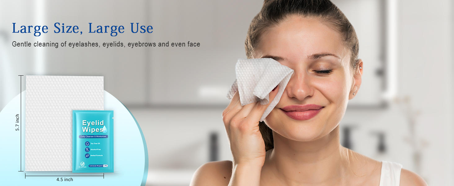 【 Soft Material | Multiple Uses】Our soft and textured oversized eyelid wipes are larger than standard wipes and can be used on both sides. They have deep texture cleaning and gentle exfoliation smooth and gentle skin care gently clean eyelashes eyelids eyebrows and face perform a second cleaning after makeup removal