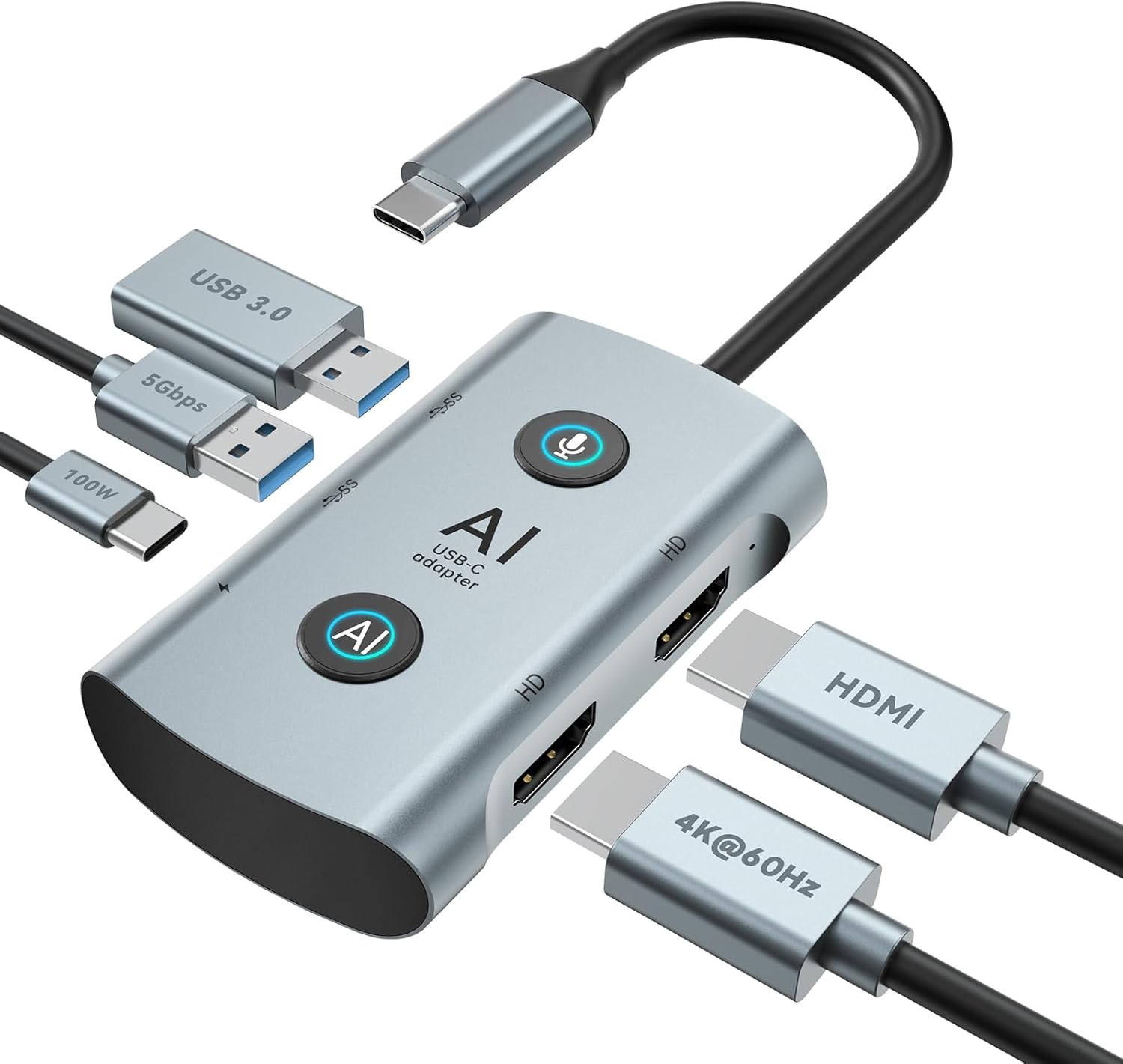 Smart Docking Smarter OfficeThe TOPOINT 7-in-1 AI Hub Docking Station is more than just a USB hub—it’s your AI-powered productivity partner. Built for remote work smart office needs and hybrid professionals this all-in-one hub seamlessly combines hardware performance with intelligent software tools.✔️ Dual HDMI output lets you mirror or extend your screen to 2 displays — perfect for multitasking across spreadsheets meetings and creative workspaces.✔️ AI Voice Transcription & Translation powered by iFLYTEK ensures accurate speech-to-text capture and multilingual conversation support.✔️ Access a powerful suite of AI Office Tools: generate presentations draft content design mind maps build OKRs and even analyze markets — right from your hub’s companion app.✔️ Universal Connectivity with USB 3.0 Type-C PD and plug-and-play compatibility across Windows macOS Android — no driver needed.✔️ With up to 100W Power Delivery this USB hub keeps your laptop fully charged while connected to all your peripherals.Engineered for speed. Designed for thinkers.Whether you're an educator marketer freelancer or manager the TOPOINT 7-in-1 AI Hub is your gateway to seamless connectivity and next-gen productivity.