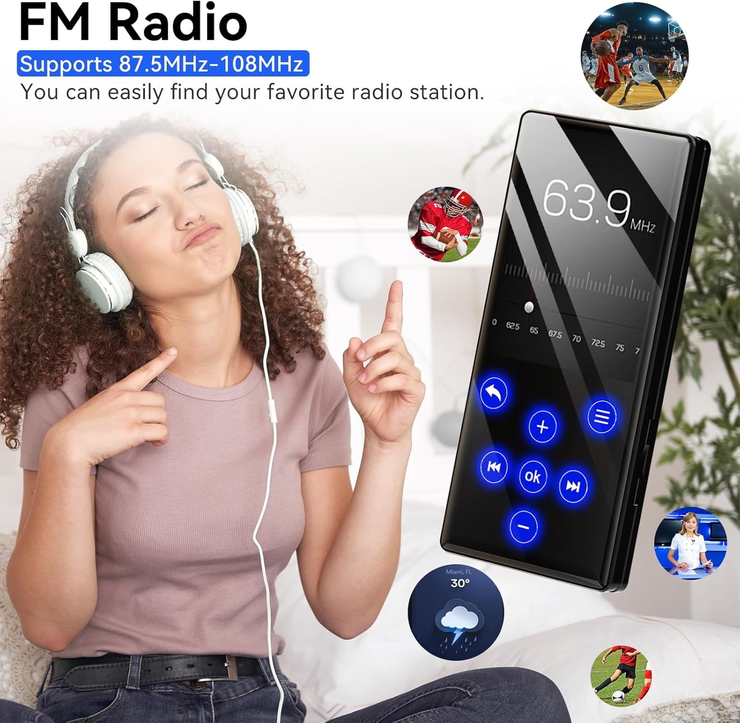🎵🎧🎵Multifunctional MP3 Player: Not just a music player it also supports video playback audio recording FM radio e-books (TXT format) A-B repeat alarm clock calendar and more. A versatile gift for kids seniors or friends
