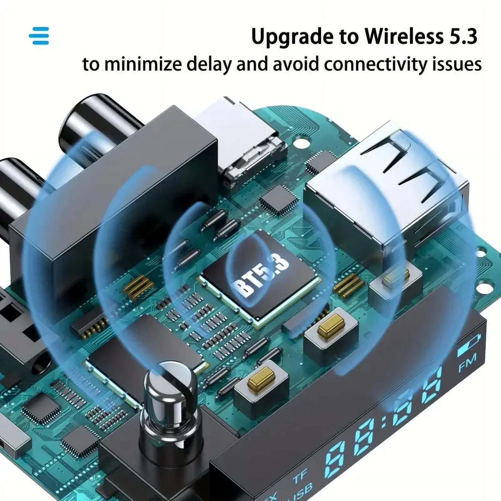 Package Include: 1 x Bluetooth 5.3 Transmitter Receiver1 x 3.5MM Audio Cable1 x RCA Audio Cable1 x Power Cord1 x ManualConnection Operation:Step 1: Connect the product to the device through the input/output interface and select the transmission mode (TX) or receiving mode (RX) as needed.Step 2: When using the receiving mode (RX): turn on the mobile phone Bluetooth search for C68" and click Connect; When using the transmitting mode (TX): turn on the Bluetooth headset/speaker to enter the pairing state. This product will automatically search for nearby devices and connect. After the connection is successful the screen stops flashing.Step 3: After the pairing is successful you can start using it.Specifications:Bluetooth Version: Bluetooth 5.3Bluetooth Transmission Distance: 10 mBluetooth Transmission Protocol: EDR/A2DP/HSP/AVRCPBluetooth Receiving Function: Connect to 1 mobile phoneBluetooth Transmitting Function: Connect to 1 pair of headphonesBoth Transmission and Reception Support USB/TF Card PlaybackSupported Interfaces: AUX/Dual Channel/TF/U Disk/3.5 mm Audio JackCompatible Devices: Various Speakers/Computers/Laptops/TVs/Bluetooth Headsets/Wired Headsets/Projectors/Amplifiers/Tablets/Mixers etc.Description:【Bluetooth Version 5.3】This Bluetooth Audio Adapter supports the new upgraded Bluetooth V5.3 version Bluetooth signal is stronger can receive Bluetooth signal within 10m the transmission is more stable so you can enjoy the CD-like sound quality.【Bluetooth Transmitter Receiver】This Bluetooth adapter integrates two functions of Bluetooth transmitter and Bluetooth receiver in one you can play music through Bluetooth connection also can be inserted into a USB flash drive so you can enjoy the music atmosphere anytime and anywhere.【Digital Display】This adapter can show the name of the searched Bluetooth devices to help users better pairing.【Easy to Operate】Only need to connect with other devices through AUX cable or RCA cable to use (need to power on the device first) you can connect Bluetooth device and TF card at the same time and switch different modes with one click.【Wireless Connection】This Bluetooth receiver can convert non-Bluetooth devices to Bluetooth devices for wireless connection suitable for car radios old stereos amplifiers televisions desktop computers cell phones tablets and many other devices devices.【NO BATTERY INCLUDED】With the wired charging cable you can never worry about stopping working because of low battery.