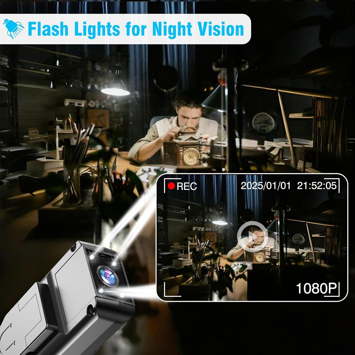 Body Camera with Audio and Video Recording 1080P Bodycam Handheld Video Recorder with 1.3 Screen 180° Rotating Lens 6h Battery 4 Fill Lights Motion Detection for Personal Civilians Travel