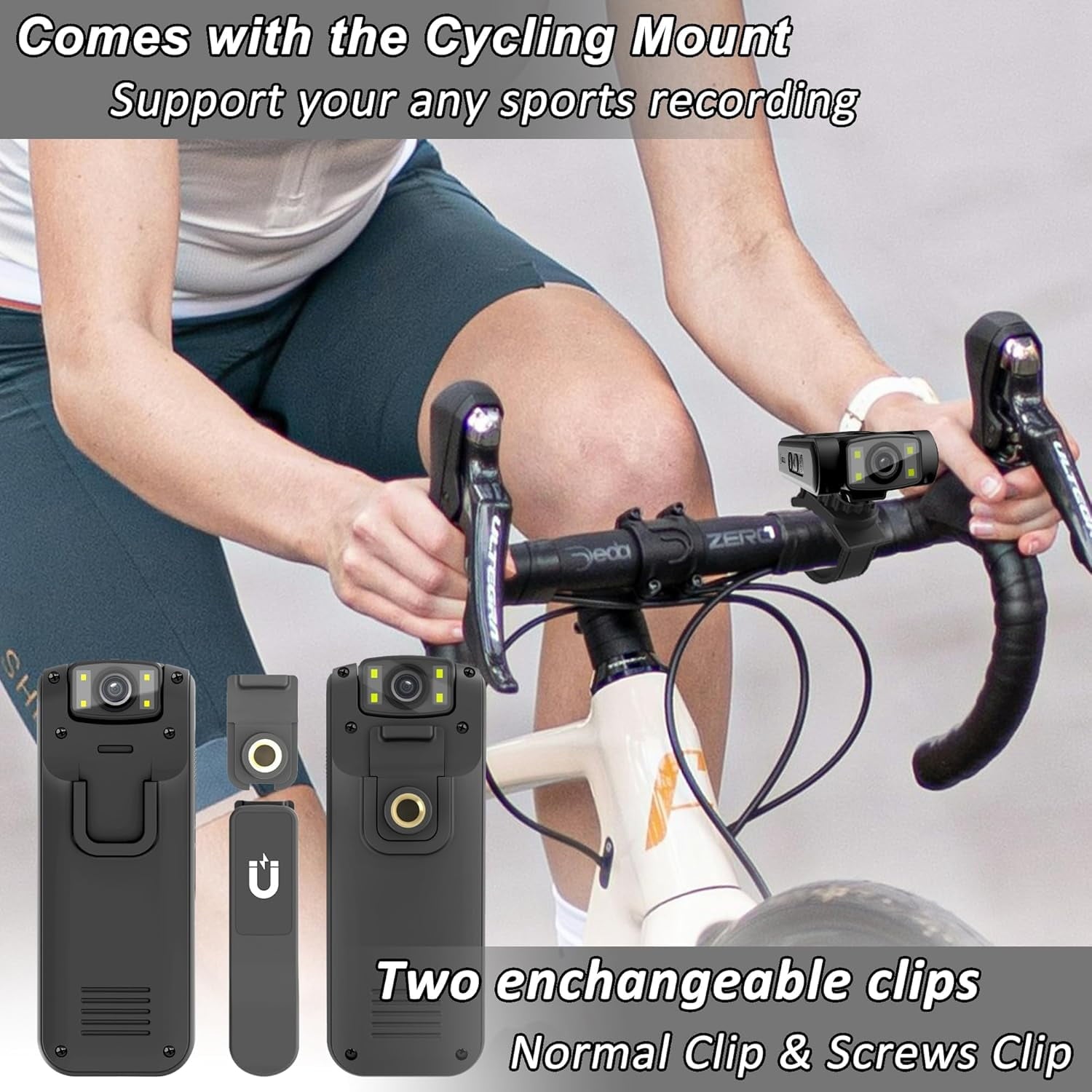 【1.4" Powerful Cam's LCD Screen / Hotspot Mode】1080P Body Camera Recorder with the 1.4IN High-quality LED Screen to replay the videos. Convenient for your footage to replay & delete instantly. Provided a Detailed menu for you to use. Offering inverted screen switching mode & power display Max 10 mins loop recording and time stamp setting. No matter where & when the Hotspot mode can help you download your recordings to your phone from the cam. Also support no card / remote record [Limte 32ft]
