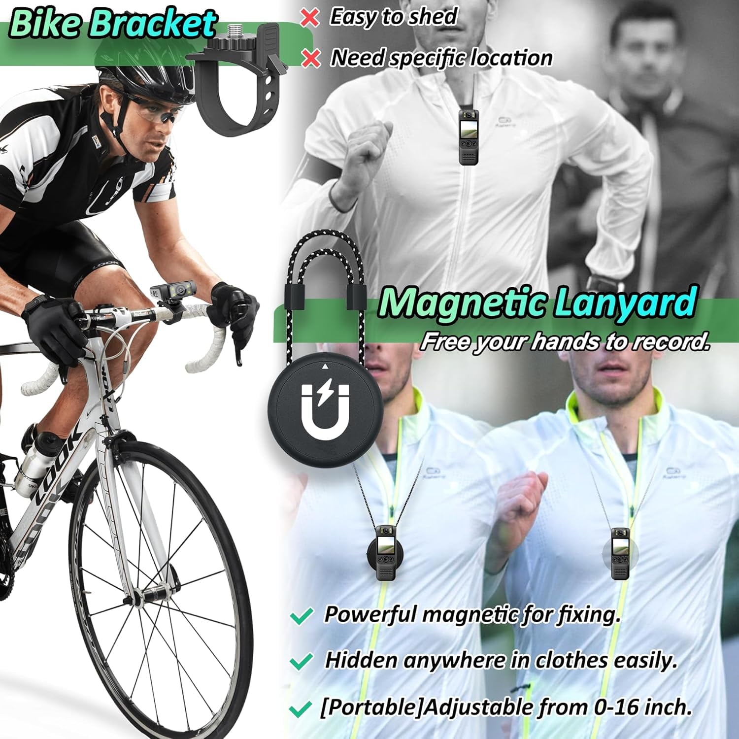 【Ture HD 1080P & Magnetic Lanyard】MUSICOZY Body Camera Combine high-quality optical glass & multi-layer coating technology to ensure the recording quality videos can be captured accurately & clearly by it. Through the 1080p sensor you don't worry about losing any detail under your 12 million-pixel footage. The H.264 format helps you effectively save your videos ensuring safety and memory limits. We also come with a mini magnetic lanyard for your camera fixing & recording at any when/where.