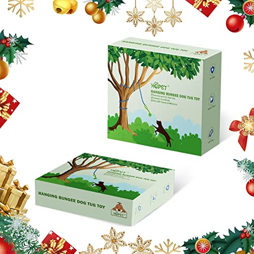 🎄【EASY TO HANG & ADJUSTABLE】16ft long dog rope toys for large dogs and you can toss the bungee cord over the strong tree limb loop it and pull it. Of course you can also hang the dog toys for aggressive chewers from a tree branch wood beam patio and other things that have some height for support. You can adjust the height of the dog rope toys to make this interactive spring pole toy more challenging for your furry friends