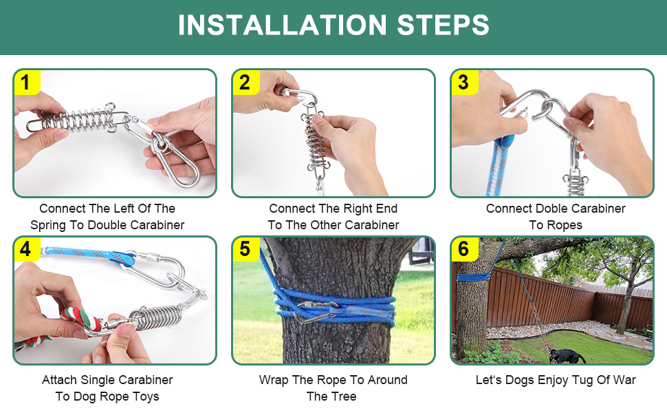 🐶【 DURABLE AND SAFTY】The tug toy for dogs with 2 replacement dog rope toys which is more durable. And metal spring is a “shock absorber” and is used as a buffer process this design can ensure the safety of the dog bungee high place. Dog toys for aggressive chewers hold up to 600 pounds made of rustproof stainless steel. Dog bungee tug toy rope is made of indestructible outdoor bungee rope. You never worry about the rope toy breakage due to over-stretching