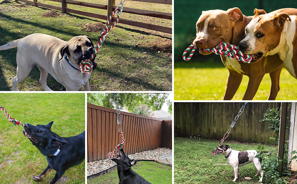 Life gets busy. we don't have time and energy to accompany our dog to play games together. The tether tug outdoor dog toy can make dogs play by themselves and get healthy exercise. And this helps dogs strengthen their jaws and neck by flexing their neck.