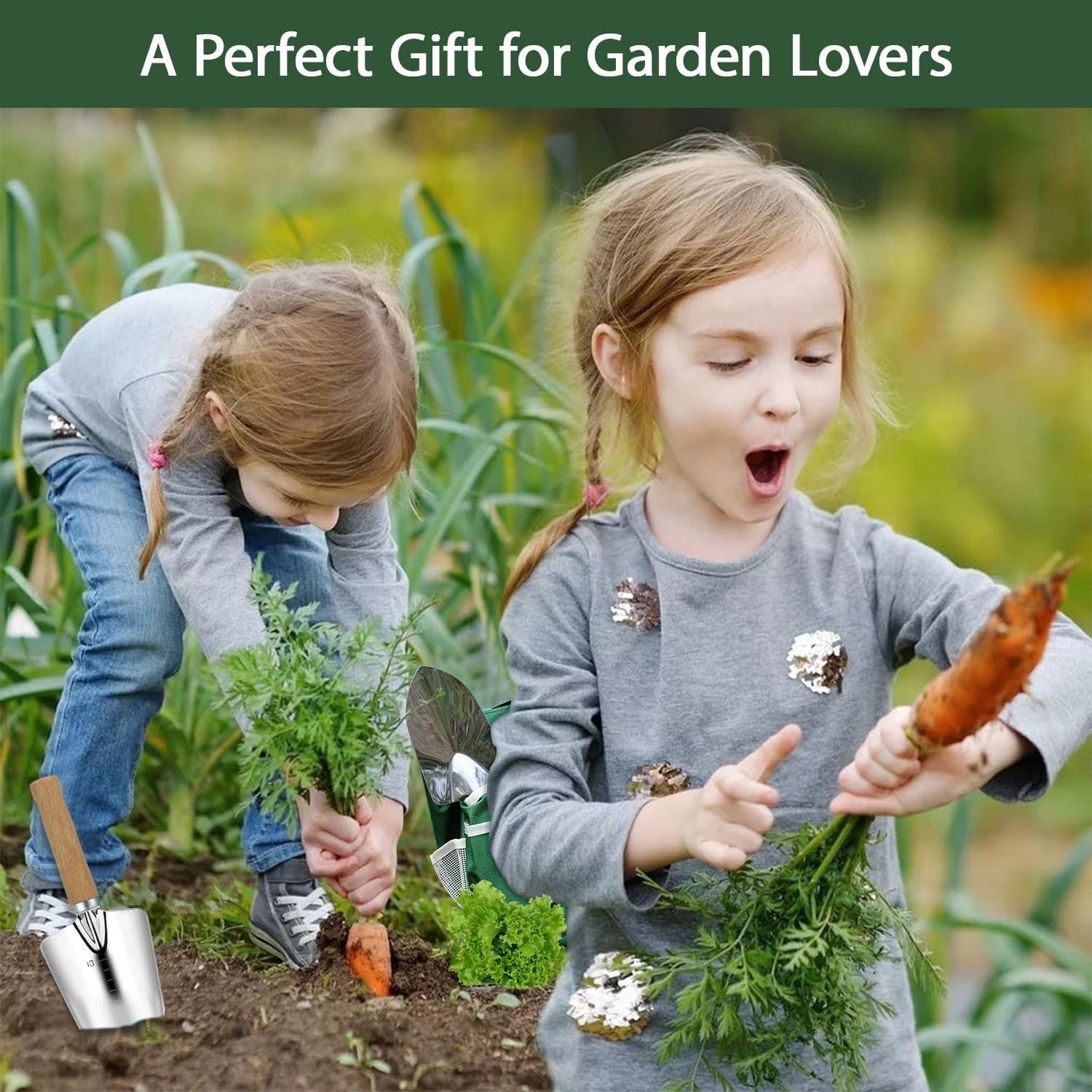 MUSICOZY Garden Tool Set12 Piece Gardening Kit with Heavy Duty Folding StoolGardening Tools with Detachable Canvas Storage Tote BagStainless Steel Outdoor Hand Garden Tools Gardening Gifts for Women MenFeature of ToolsWooden HandleOffer a comfortable grip and holes on the handles allow for convenient hanging storage on hooks or pegboards.Thickening and RoundedEasier to penetrate the soil and also withstand the pressure and force exerted during gardening tasks without bending or breaking easily.Stainless Steel MaterialWith chrome coating these tools have better rustproof performance and serve for longer time.Details of Stool & BagLightweight and DurableCarbon steel folding stool is low-maintenance and easy to clean. Easy to carry for your on-the-go gardening.Solid and PortableDurable to withstand the weight of the tools and any rough handling during transportation or storage. Easy to remove from the stool.Large CapacityKeep your tools organized and easily accessible and external pockets allow you to visually identify the tools or items stored in them at a glance.Feature:Special Feature:DurabilityFoldingHeavy DutyStainless SteelHandle Material:Stainless SteelMaterial:CanvasPolyesterColor:GreenRecommended Uses For Product:MenProduct Dimensions:40.5*6.5*45.5CM/15.9*2.6*17.9inchesPackage:Pointed Shovel*1Pointed graduated spatula*1Three-finger fork *1Wire rake *1Wire Root Picker *1Multi-functional handheld toolkit *1Portable folding stool *1Spray bottle *1Non-slip gloves*1Gardening Wire *1Straight gardening shears *2