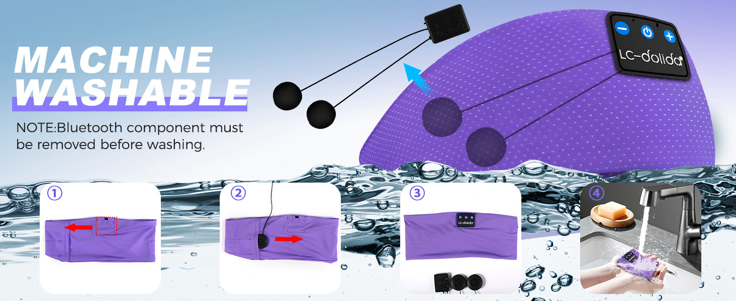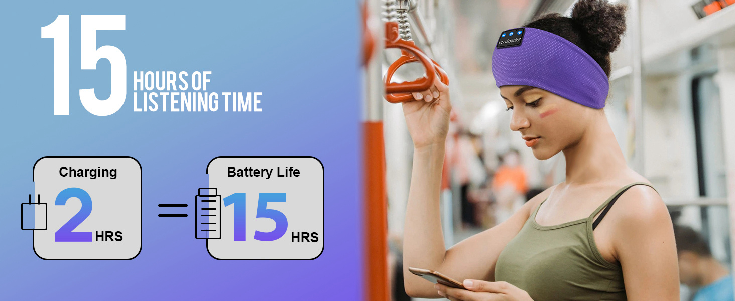 【2 Hours Quick Charging 15 Hours Continuous Playing】 Built-in powerful battery chip this Bluetooth headband sleeping headphones only needs to be charged for 1~2H the talk time/music playback time can reach 10 hours which is enough to support long time exercising like hiking climbing. Disassemble and Washable Bluetooth Sleep Headphones music headband is more convenient to keep and clean.