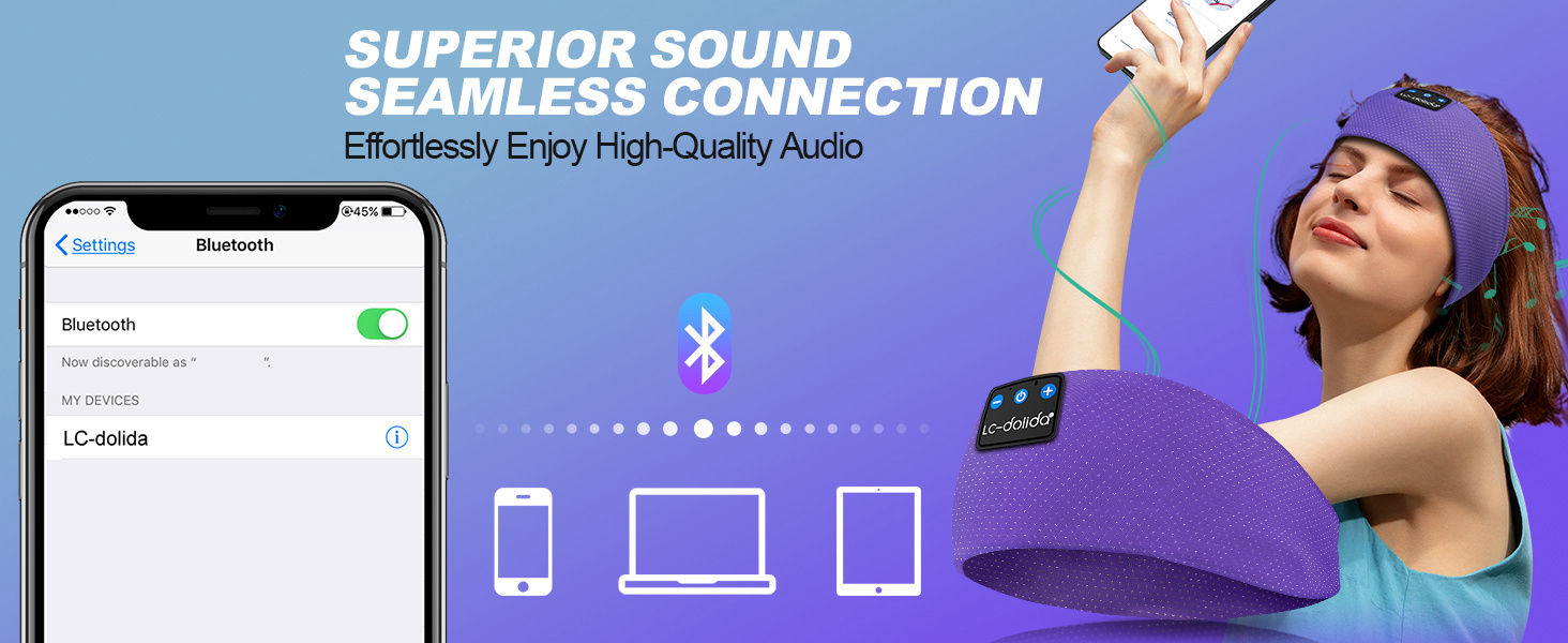 【No Worroy Dropping Headphones When Exercising】LC-dolida bluetooth sleep headband with built in bluetooth 5.4 and speakers allows you to listen music and answer callings no hassle to wearing additional earphones In addition this bluetooth headphones headband sport sleep headband protect you from being disturbed by your mess hair and sweat. Enjoy a more convenient life style.