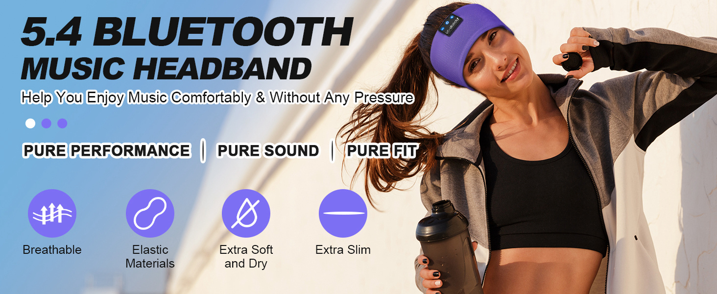 【5.4 Bluetooth HiFi Stereo Sound with Thin Speakers】Bluetooth Headband sleeping headband with Latest Bluetooth technology provide more stable connection with your phones tablets laptops or pc Only 0.25 inch Thin speaker produce High-fidelity stereo sound quality and provide soft and comfortable music environment.