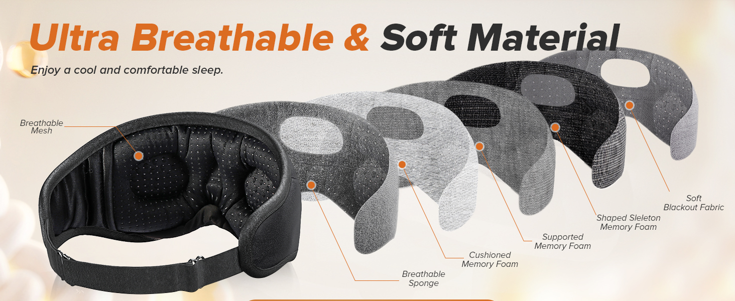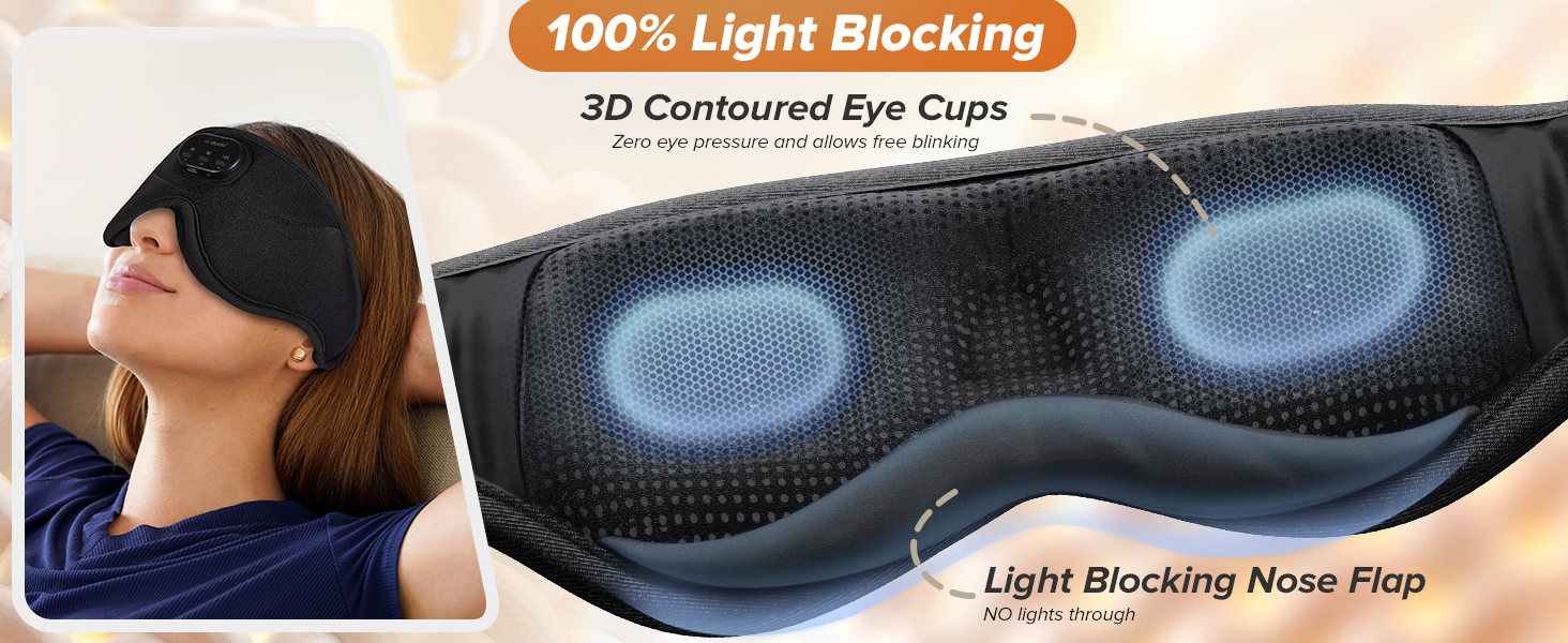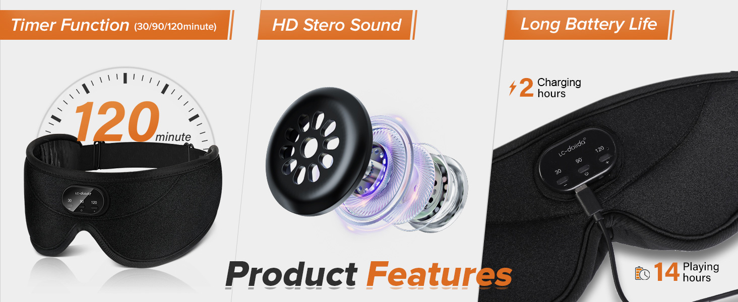 【Block Out Light Perfectly】LC-dolida Sleeping headphones has full coverage and uniquely designed of the nose area effectively blocking light from entering helping you to solve the problem of light disturbance when falling asleep. The upgraded 3D contoured design has a deeper contour in the eye area allowing your eyes to move freely and without any pressure.