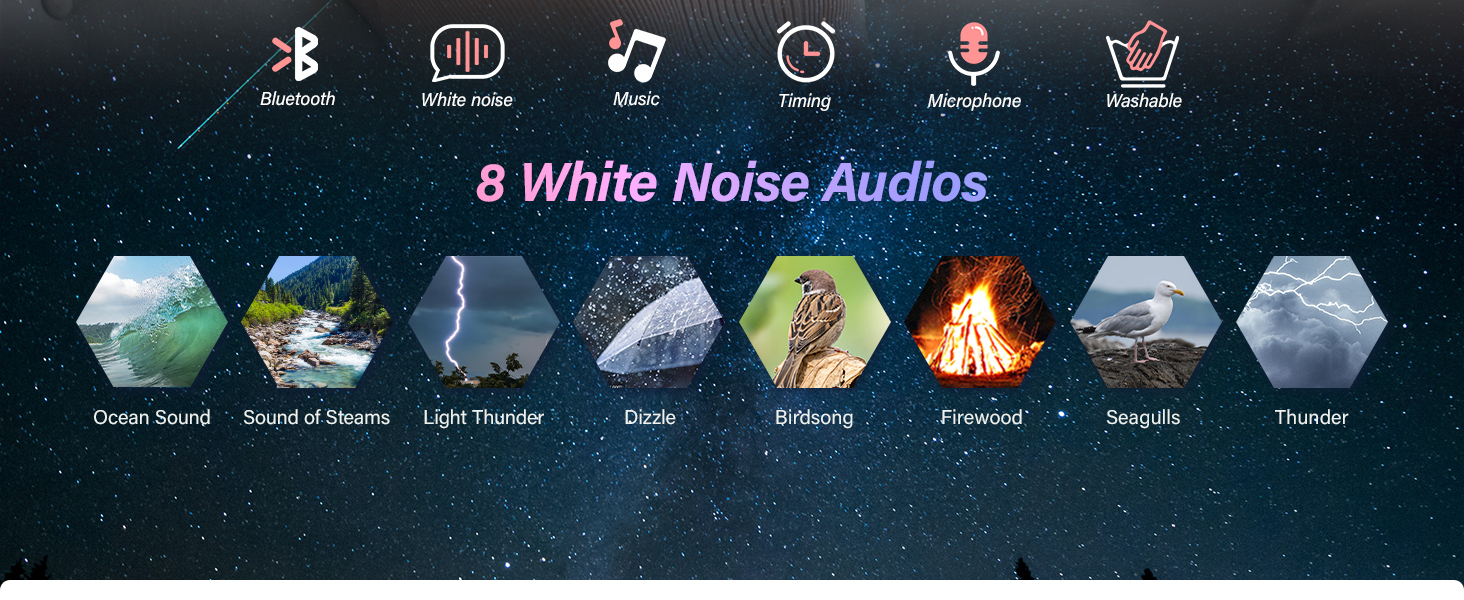 【Sleep Listening to Soothing White Noise】Sleep headphones perfectly combine Bluetooth 5.2 sleep eye mask with white noise. With 8 built-in relaxing white noise sounds Select white noise mode you can enjoy nature sounds without connecting your Bluetooth to get good sleep.