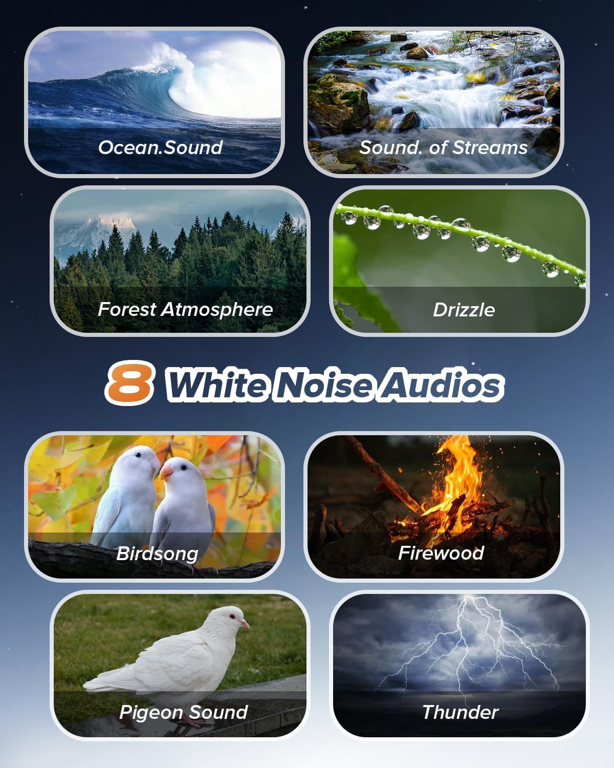 【Sleep Listening to Soothing White Noise】Sleep mask with bluetooth headphones perfectly combines Bluetooth 5.2 sleep eye mask with white noise. With 8 built-in relaxing white noise sounds Select white noise mode and you can enjoy nature sounds without connecting your Bluetooth to get good sleep