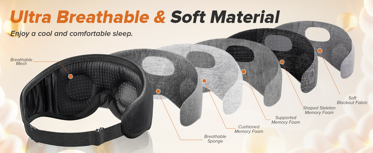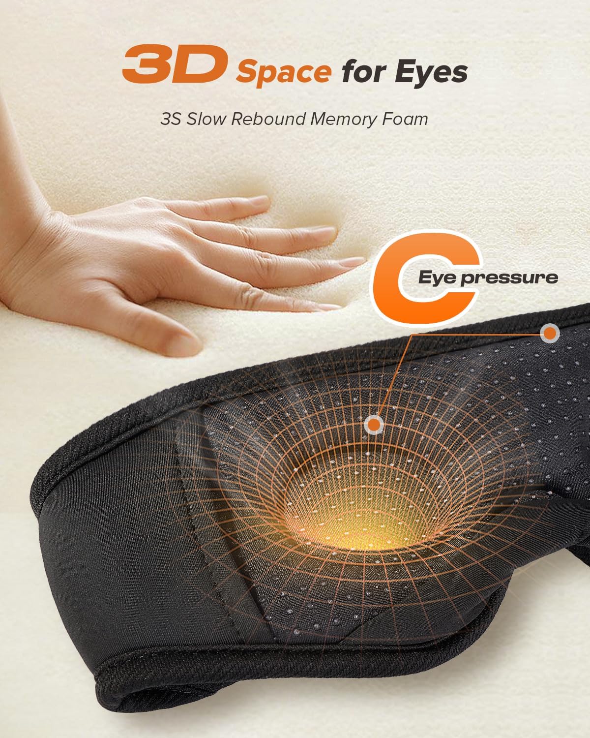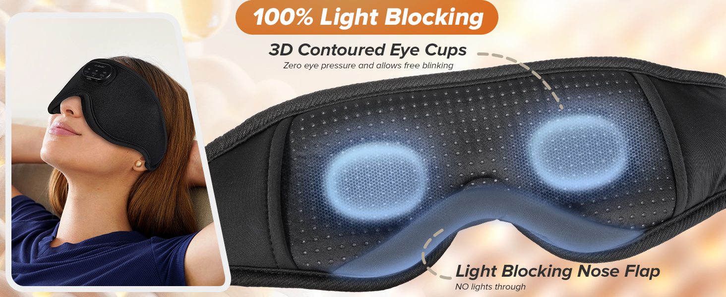 【Block Out Light Perfectly】Sleeping eye mask has full coverage and uniquely designed of the nose area effectively blocking light from entering helping you to solve the problem of light disturbance when falling asleep. The upgraded 3D contoured design has a deeper contour in the eye area allowing your eyes to move freely and without any pressure