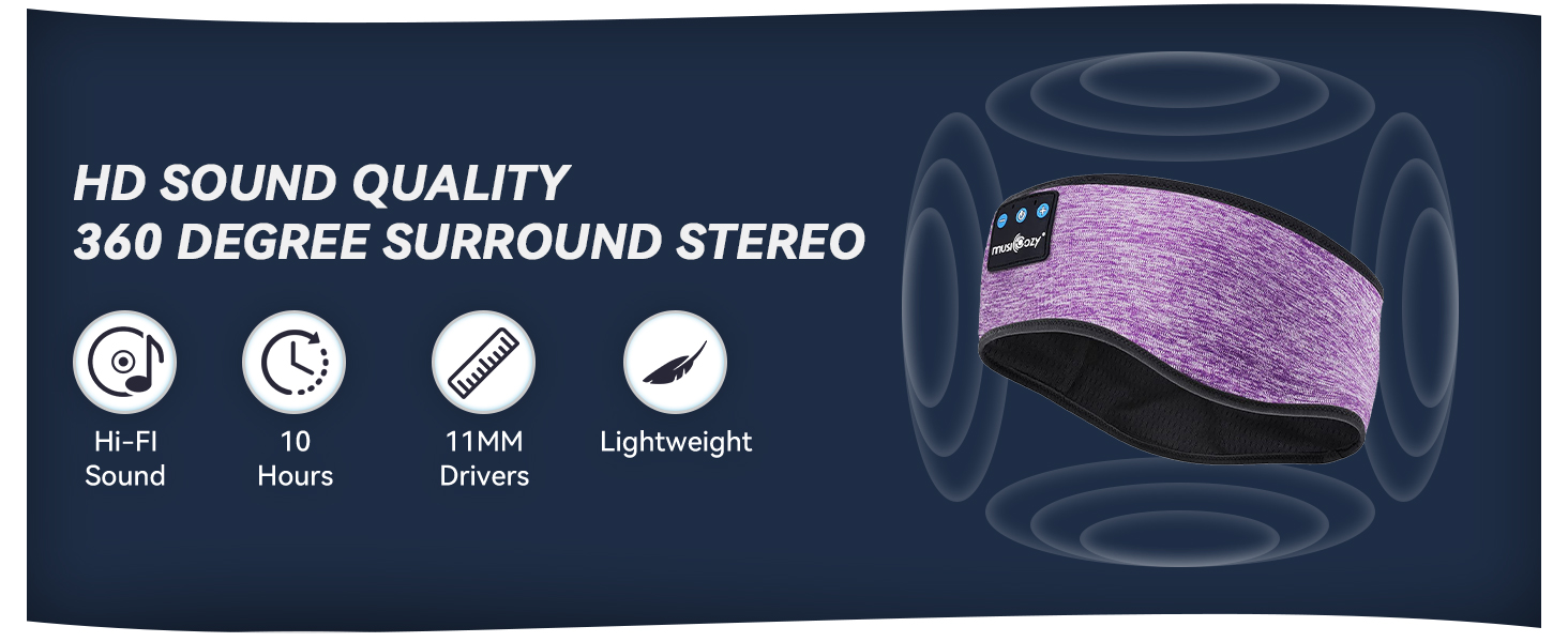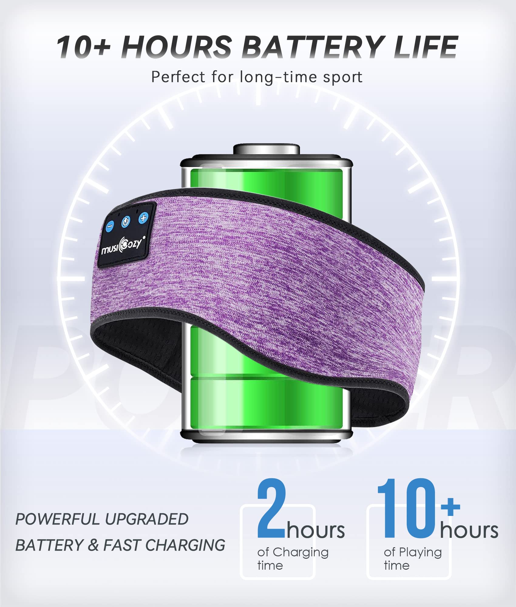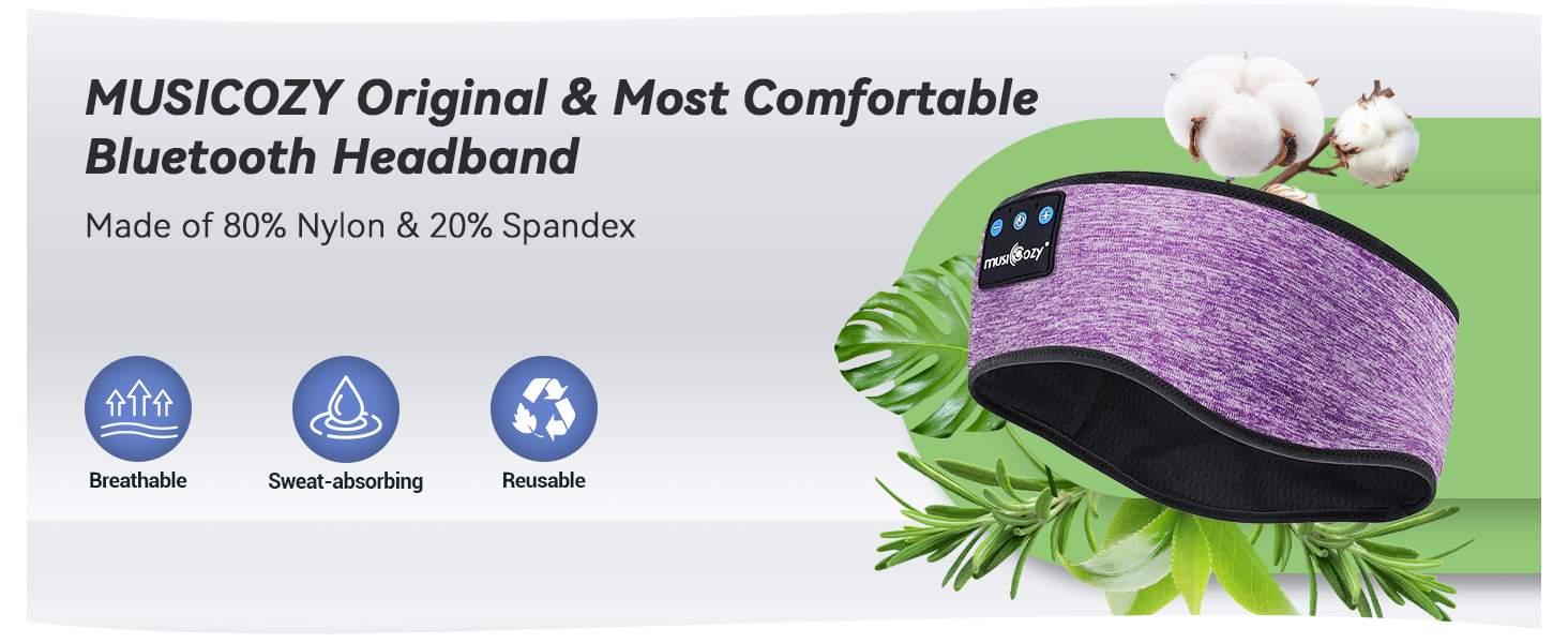 2-IN-1 BLUETOOTH SLEEP & SPORTS HEADBAND: MUSICOZY Bluetooth Headband combines the functionality of wireless headphones with a comfortable headband; ideal for sleeping workouts running yoga travel and more; blocks ambient noise without the discomfort of earbuds and keeps hair and sweat under control during exercise