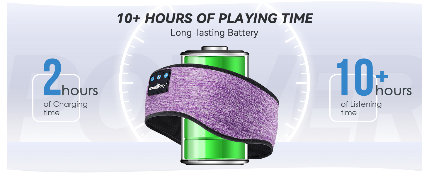QUICK CHARGE FOR ALL-NIGHT PLAY: Equipped with a powerful rechargeable battery MUSICOZY Bluetooth headband charges in just 1-2 hours offering over 14 hours of continuous playtime; perfect for overnight use or extended workout sessions ensuring your music or calls last as long as you do