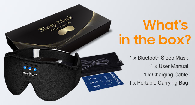 In the box you’ll find a travel pouch to conveniently store 3D sleep headphones in a charging cable to charge them with and user manual.