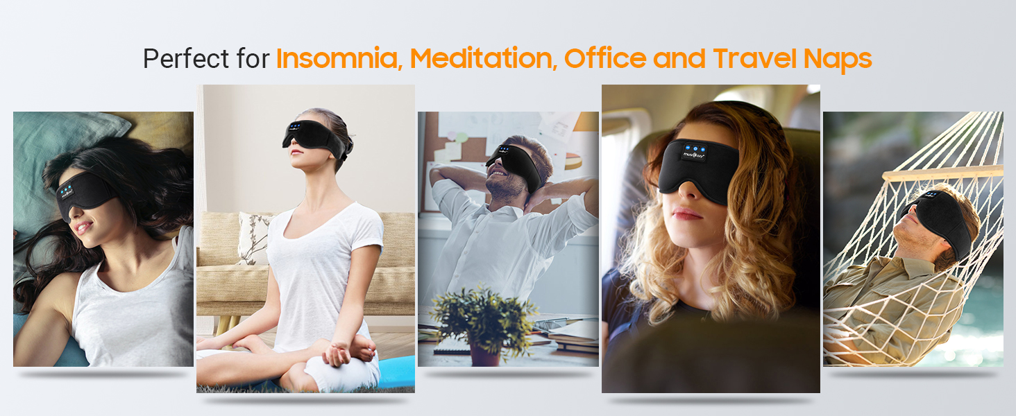 HD STEREO SOUND BLUETOOTH SLEEP HEADPHONES: MUSICOZY 3D Bluetooth Sleep Mask features high-fidelity stereo sound with advanced Bluetooth technology; blocks ambient noise without the need for uncomfortable earplugs; perfect for listening to soothing music to help you fall asleep faster without the hassle of tangled wires