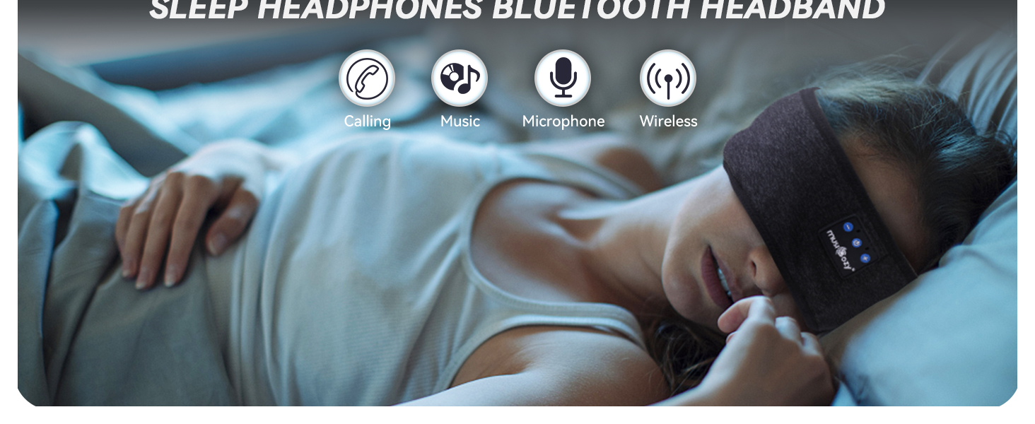 MUSICOZY Bluetooth 5.2 Sleep Headphones Wireless Headband Headphones with HD Stereo Speakers