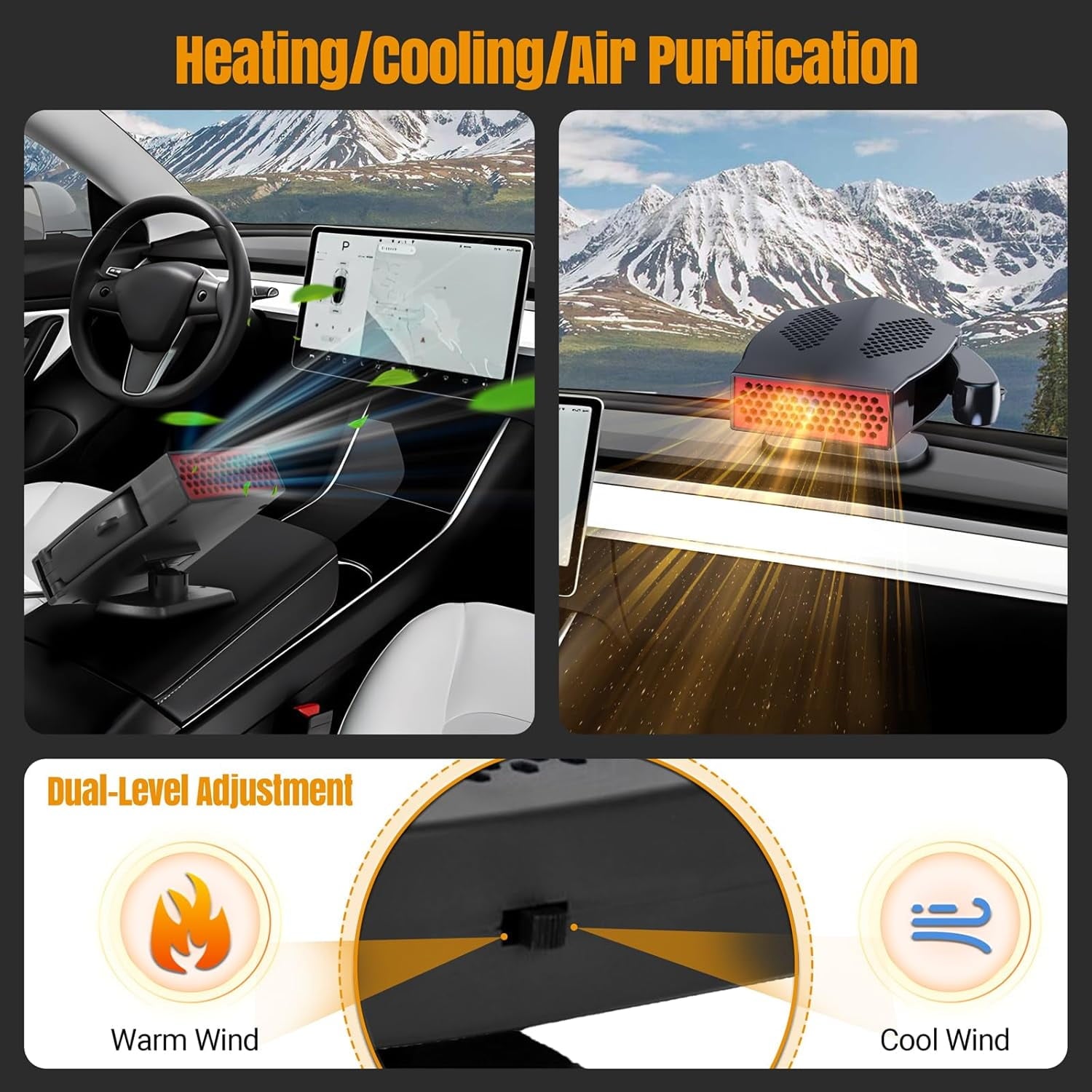 ☀️🌡️🔥Rapid Heating Performance: Experience swift warmth delivery within 2 seconds eliminating cold weather discomfort promptly. The efficient 12V heater swiftly heats your car interior and defrosts the windshield guaranteeing immediate comfort and clear vision. This innovative car heater keeps you ahead in the cold.