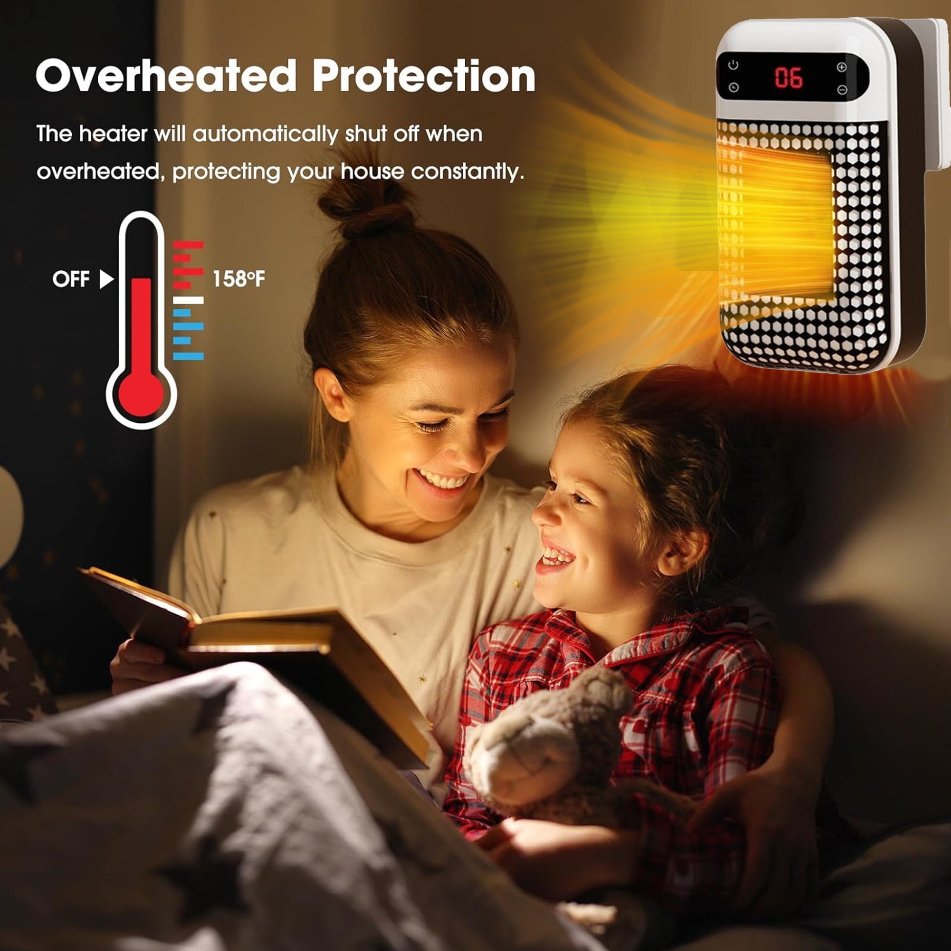 Upgrade Smart Wall Space Heater 500W/800W Portable Electric Small Heater With Adjustable Thermostat and Timer Overheat Protection LED Display Safe Heater for Office Dorm Dog Room (Black-500W)LED Display and Timer