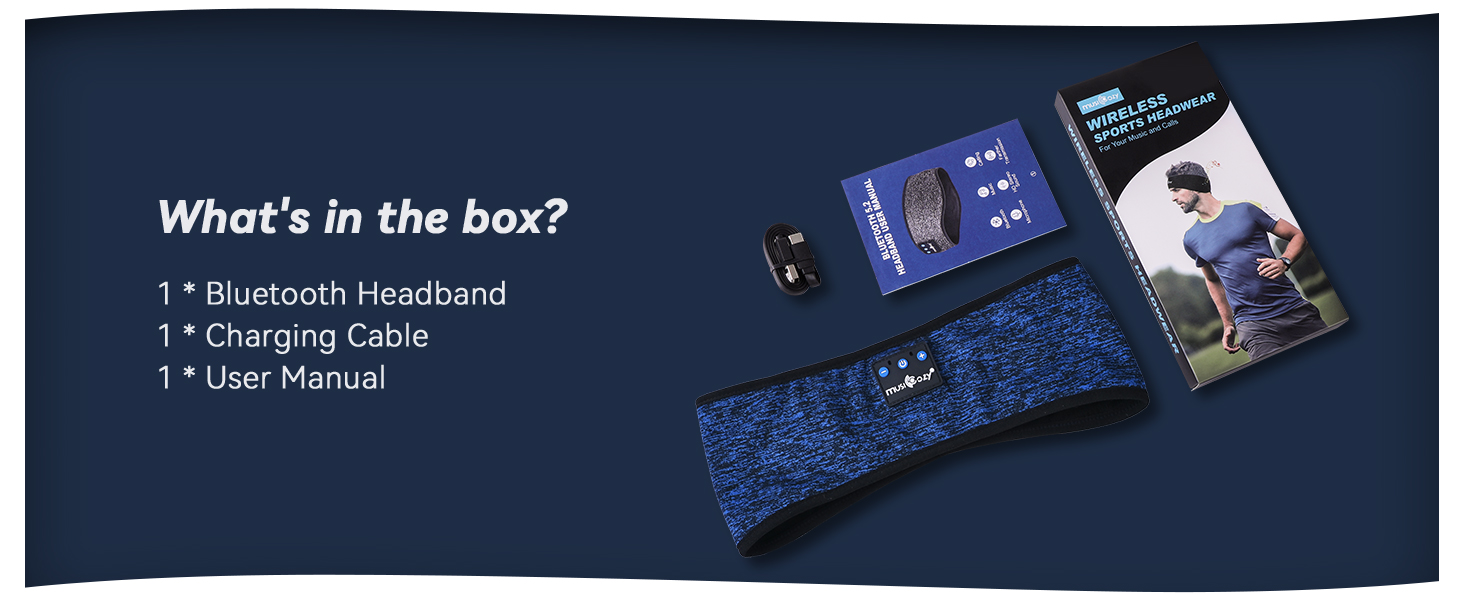 Included Components:1 * Bluetooth Headband 1 * User Manual 1 * Charging Cable