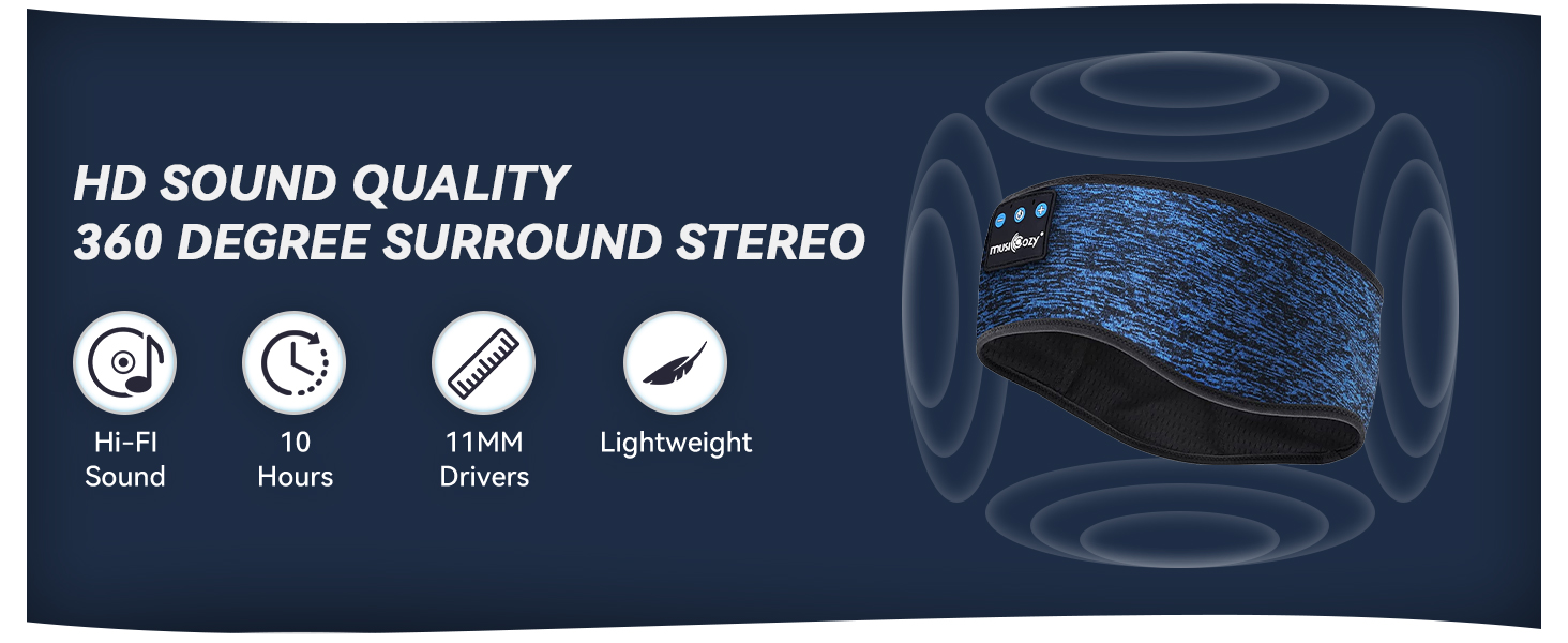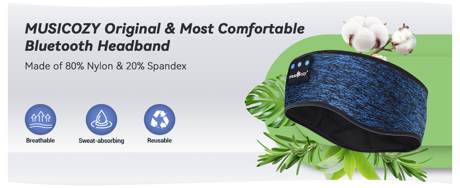 BLUETOOTH SLEEP HEADPHONES & SPORT HEADBAND: MUSICOZY Bluetooth Sleep Headband combines wireless headphones with a soft breathable headband; ideal for sleeping running yoga and workouts; blocks out ambient noise naturally without uncomfortable earbuds ensuring a seamless music experience during exercise or relaxation