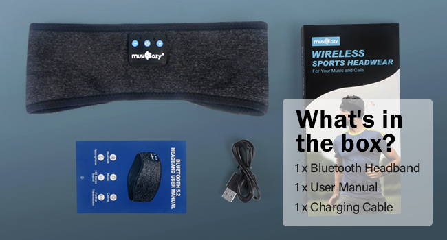 Included Components:1 * Bluetooth Headband 1 * User Manual 1 * Charging Cable