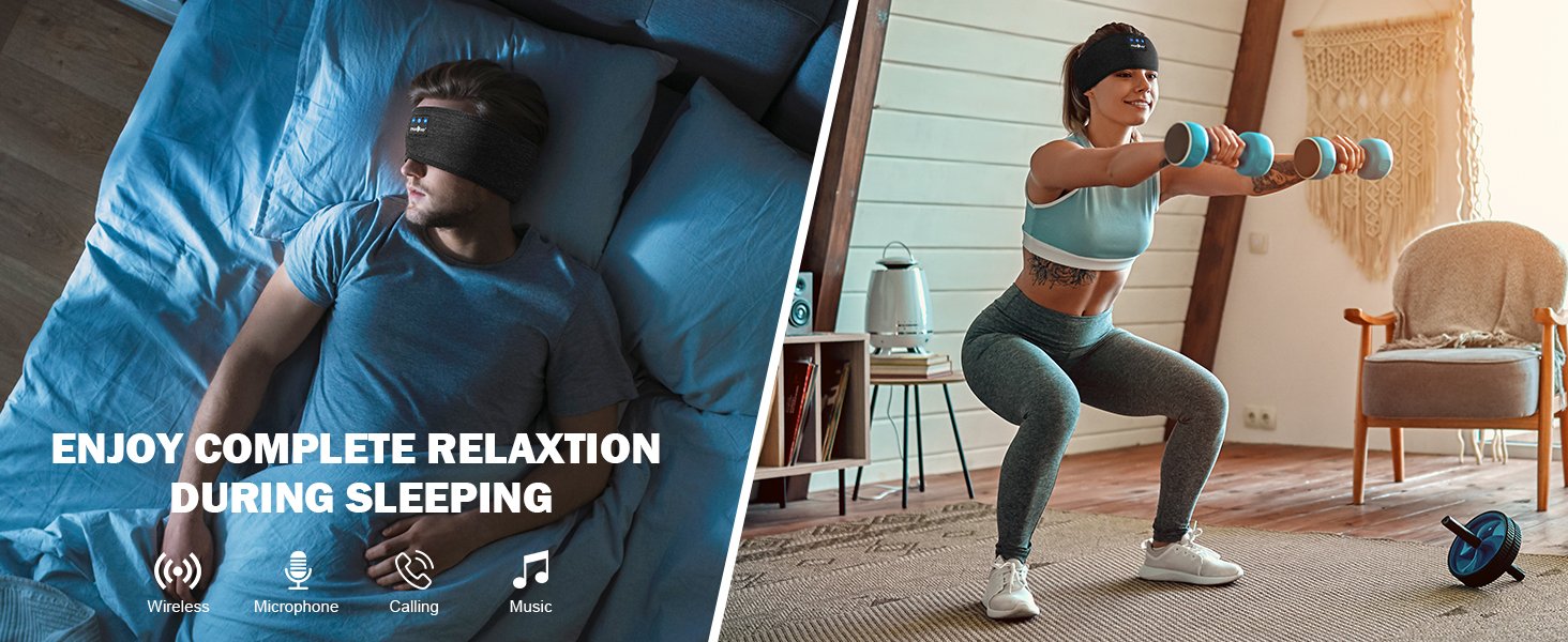 【💤 Sleep Headphones & Sleep Mask & Sports Headband 3 in 1】 MUSICOZY Bluetooth sleep headphones feature a headband design with wireless headset inside allow you to enjoy hands free music and protect you from being disturbed by your mess hair and sweat. Wireless sleep headphones are perfect suitable for nap air travel gym workout running yoga as well as sleeping. Bluetooth headband headphone is the best gift for family or friends.