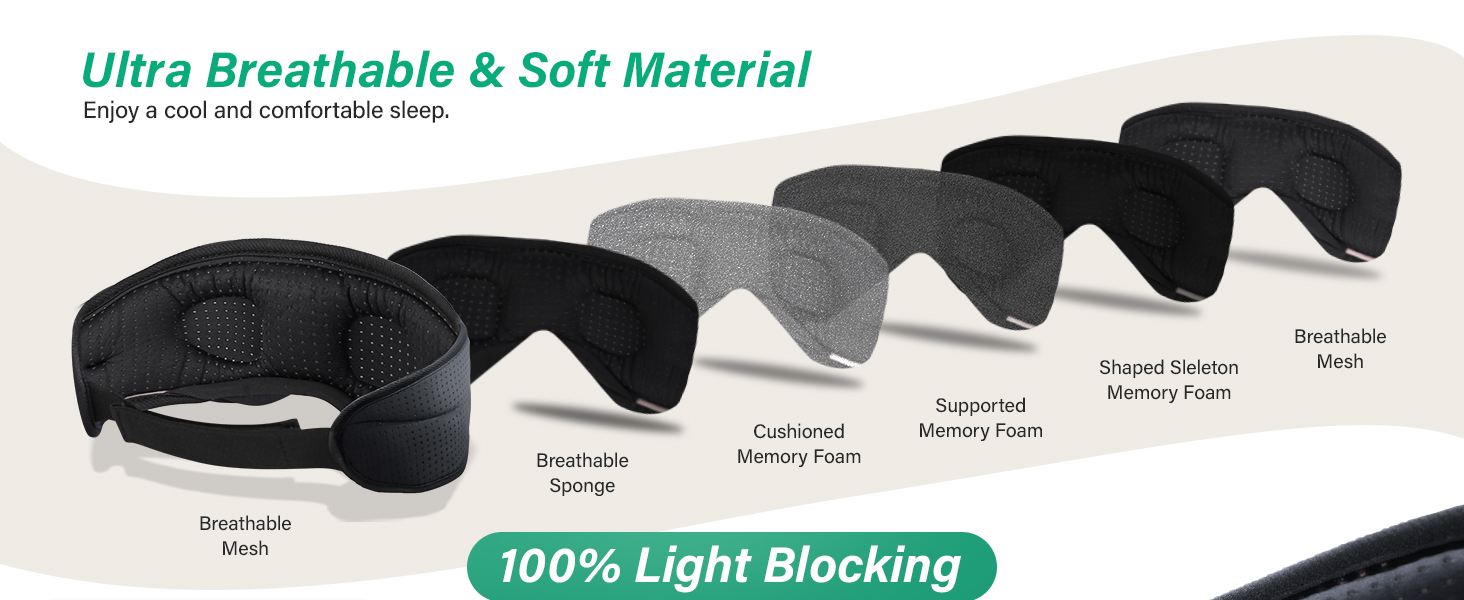 【Block Out Light Perfectly】sleep eye mask has full coverage and uniquely designed of the nose area effectively blocking light from entering helping you to solve the problem of light disturbance when falling asleep. The upgraded 3D contoured design has a deeper contour in the eye area allowing your eyes to move freely and without any pressure