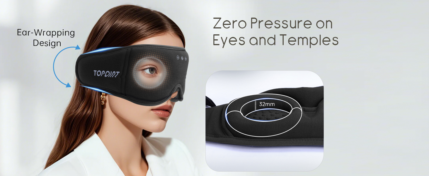 Zero Pressure 3D Eye Cups: Say goodbye to discomfort! Ultimate Comfort for every Sleepers 32mm deep contoured cups and ultra-soft memory foam eliminate pressure on your eyes. Designed by sleep experts not engineers