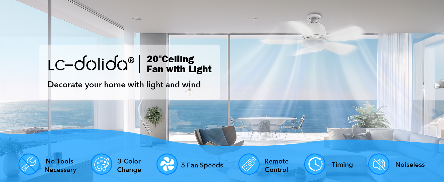 ๐๐ข๐ฆ๐ฆ๐๐๐ฅ๐ ๐๐ข๐ ๐ก๐ญ ๐๐จ๐๐ค๐๐ญ ๐ ๐๐ง: LC-dolida ceiling fan light comes with a bright 1500LM fan bulb that effortlessly illuminates the entire space. It offers a step-less dimming mode (10%-100%) for customized lighting options. Additionally you can easily adjust the color temperature from warm (3000K) to cool (6500K) using the remote control providing you with a seamless and personalized lighting experience