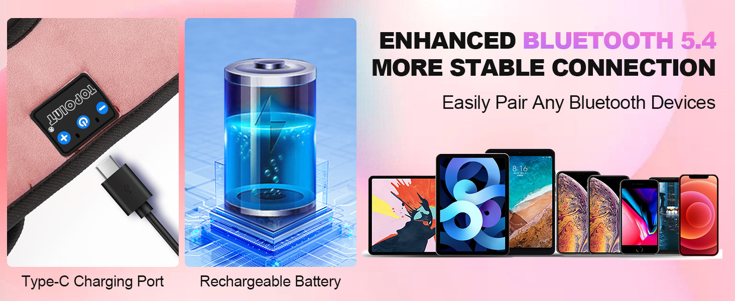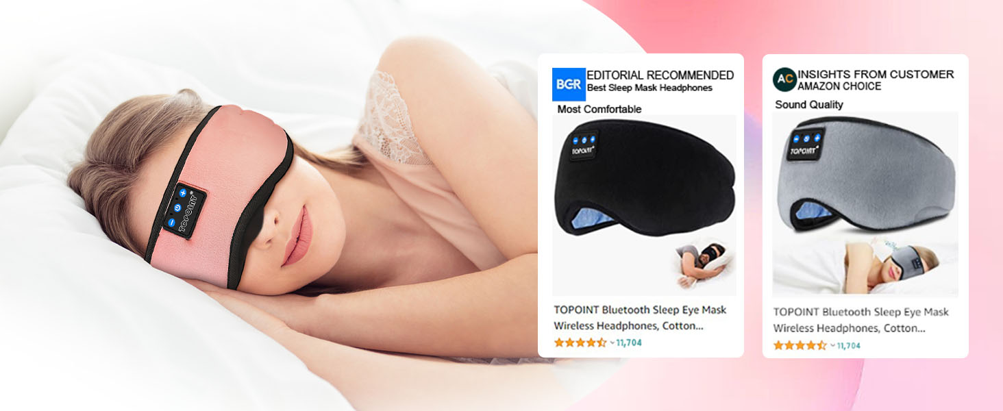 Bluetooth Sleep Mask with Bluetooth Headphones Soft and Very Comfortable to Wear! TOPOINT is Recognized as The Most Comfortable Sleep Headphones by Platform and Editorial.
