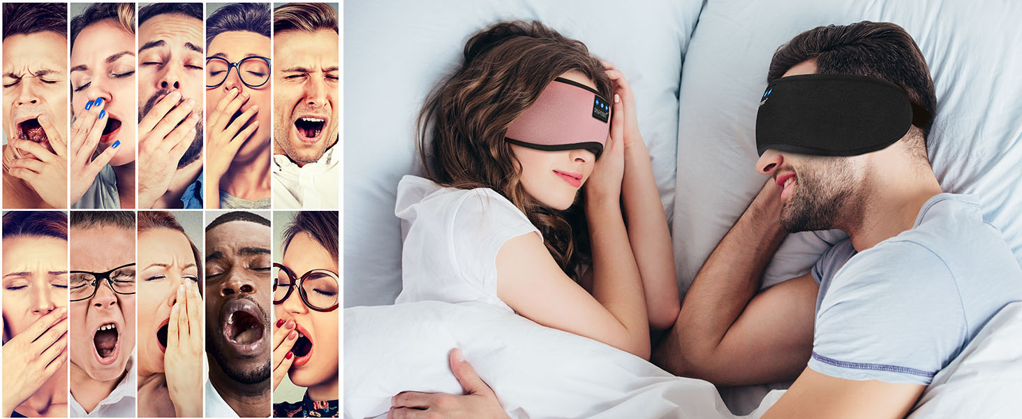 LONG-LASTING BATTERY GUARDS SLEEP: Guarding your sleep for 10 uninterrupted hours.Sleep headphones for side sleepers block out snoring get his snooze on. Eye Mask with bluetooth headphones for sleeping is greatly helpful for people who often suffer from insomnia lack of sleep anxiety high stress or are prone to being woken up by noise. Beyond that sleep mask with bluetooth headphones can effectively block out Partner snoring ensure you a sound sleep