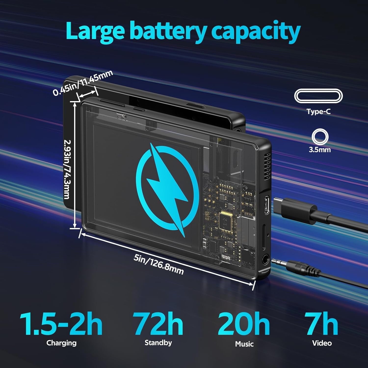 ♫High Definition IPS Touchscreen: The 4-inch color IPS touchscreen offers a crystal-clear display supporting 720p and 1080p HD videos and high-fidelity lossless music playback. The independent backlight system ensures visibility even in sunlight while eye-protection technology enhances your visual experience.
