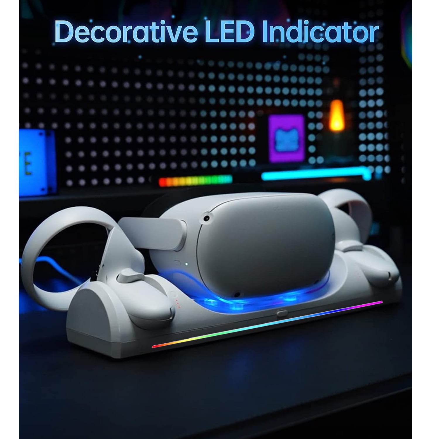 【Aesthetic LED Indicators】 The quest 2 charger is equipped with atmosphere charging indicators. A good chioce for your Oculus quest 2 accessories. Easily distinguish charging status. Red indicates charging and blue indicates fully charged. The light can be turned off when not necessary.